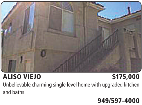 ALISO VIEJO $175,000 Unbelievable,charming single level home with upgraded kitchen and baths 949/597-4000