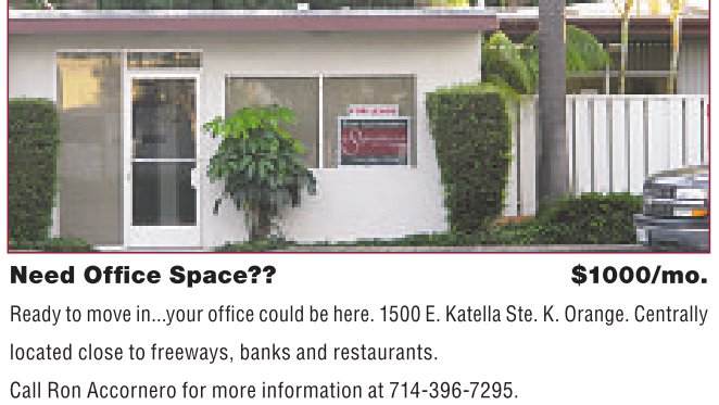 Call Ron Accornero formoreinformation at 714-396-7295.