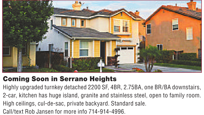 High ceilings, cul-de-sac, privatebackyard. Standard sale. Call/textRob Jansen formoreinfo 714-914-4996.