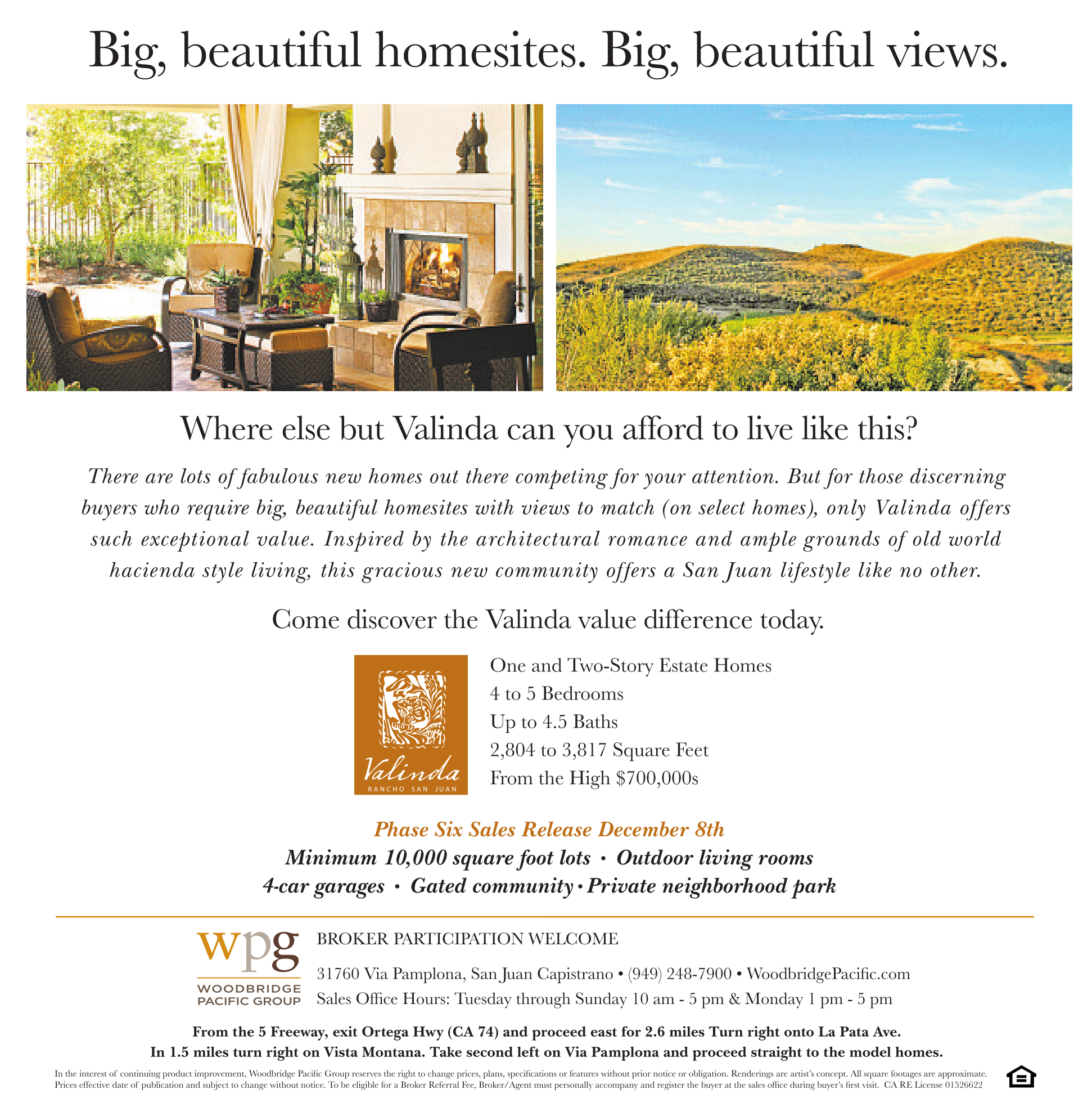 There are lots of fabulous new homes out there competing for your attention. But for those discerning buyers who require big, beautiful homesites with views to match (on select homes), only Valinda offers such exceptional value. Inspired by the architectural romance and ample grounds of old world hacienda style living, this gracious new community offers a San Juan lifestyle like no other.