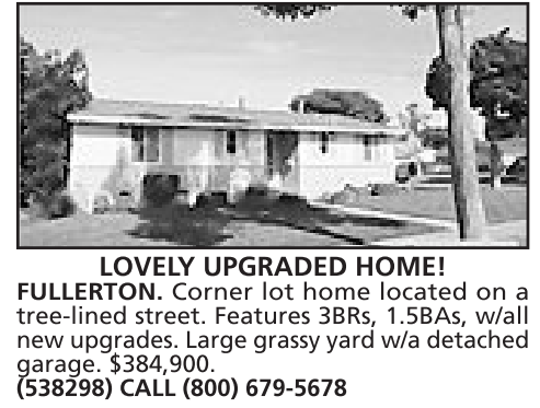 FULLERTON. Corner lot home located on atree-lined street. Features 3BRs, 1.5BAs, w/all