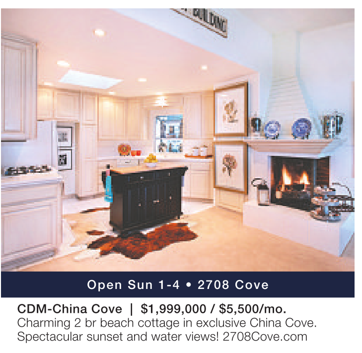 CDM-China Cove | $1,999,000 / $5,500/mo. Charming 2 br beach cottage in exclusive China Cove. Spectacular sunset and water views! 2708Cove.com
