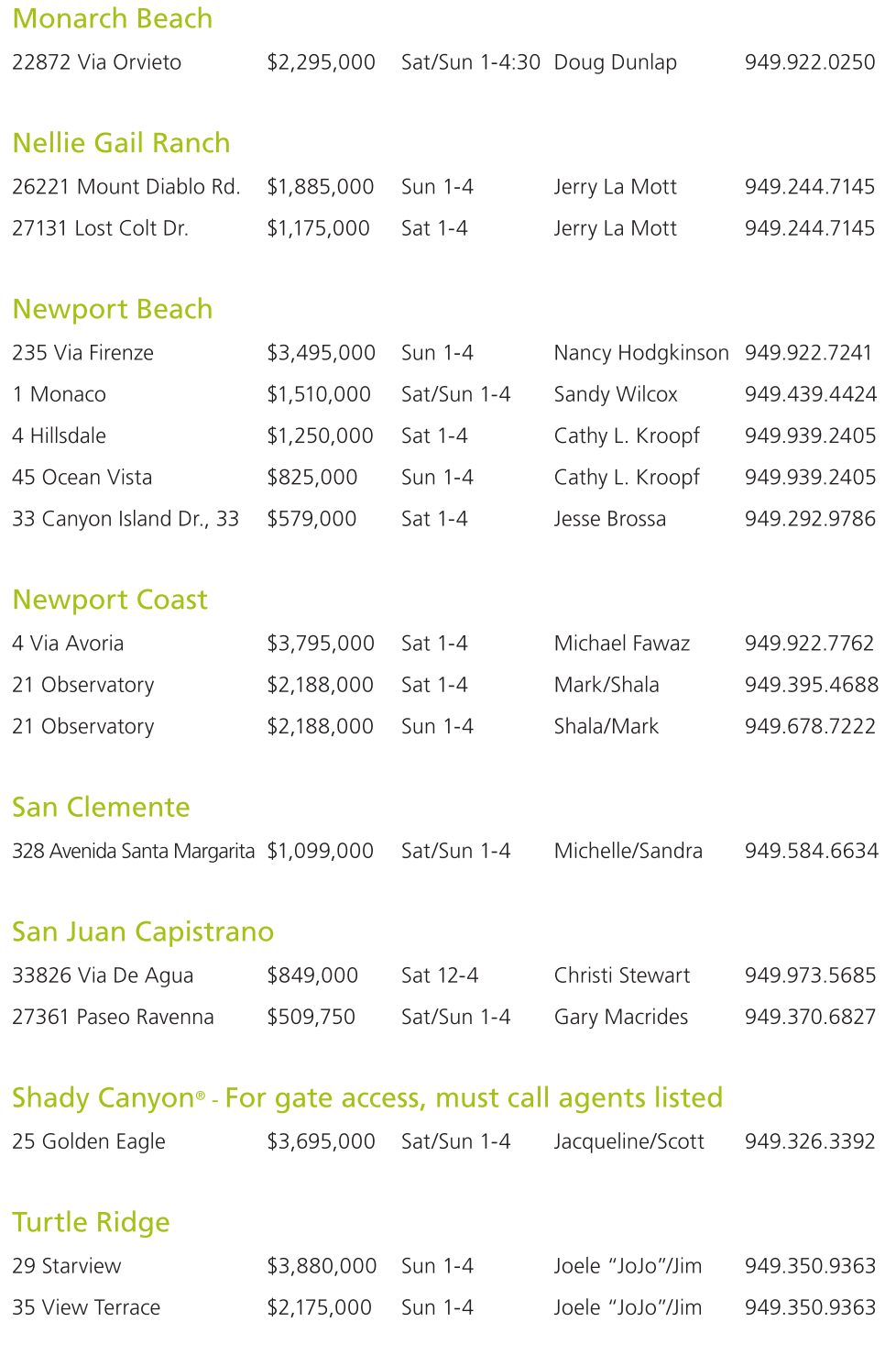 45 Ocean Vista $825,000 Sun 1-4 Cathy L. Kroopf 949.939.2405