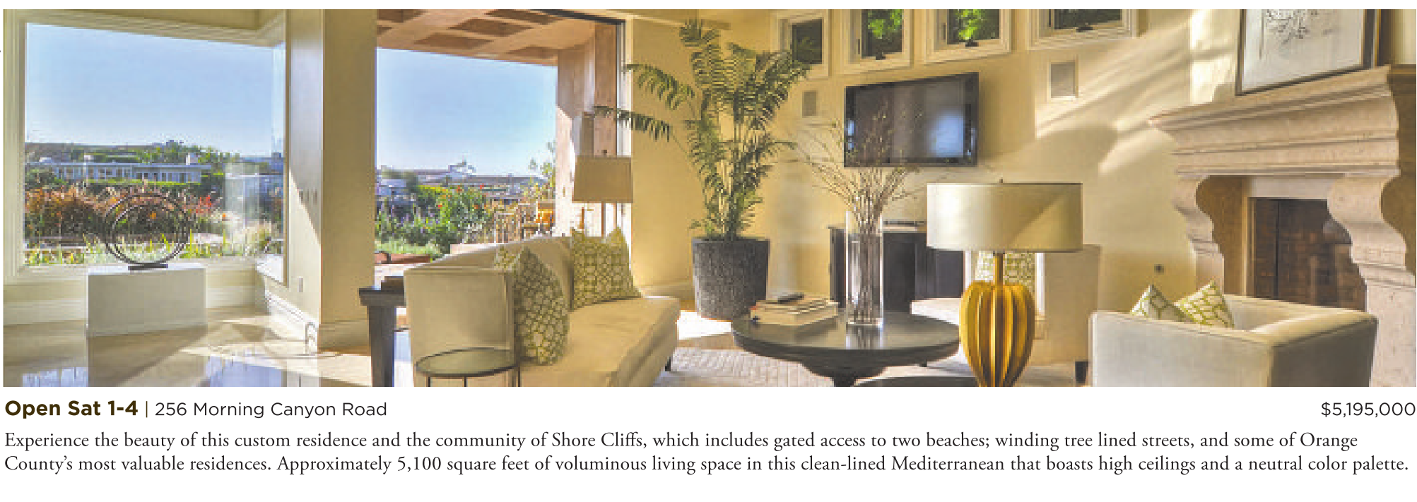 Experience the beauty of this custom residence and the community of Shore Cliffs, which includes gated access to two beaches; winding tree lined streets, and some of Orange County’s most valuable residences. Approximately 5,100 square feet of voluminous living space in this clean-lined Mediterranean that boasts high ceilings and a neutral color palette.