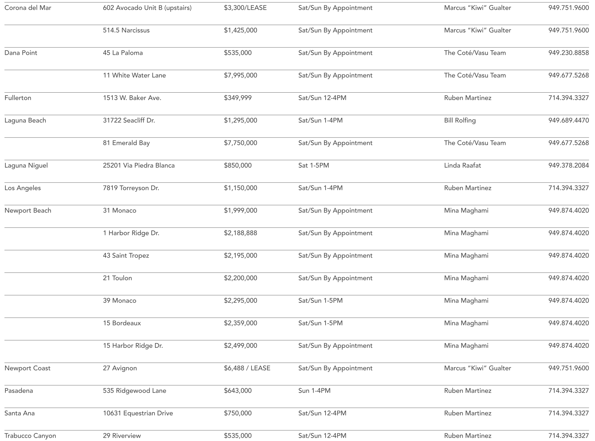 21 Toulon $2,200,000 Sat/Sun By Appointment Mina Maghami 949.874.4020