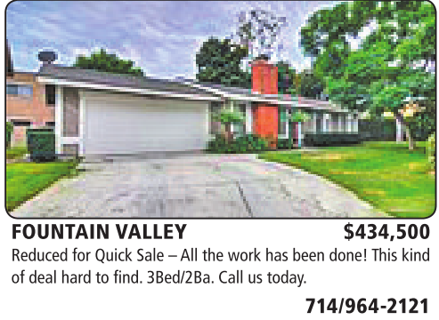 FOUNTAIN VALLEY $434,500 Reduced for Quick Sale –All the work has been done! This kind of deal hard to find. 3Bed/2Ba. Call us today.