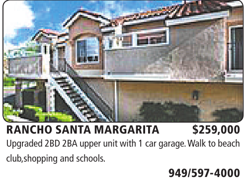 RANCHO SANTA MARGARITA $259,000 Upgraded 2BD 2BAupper unit with 1car garage.Walk to beach
