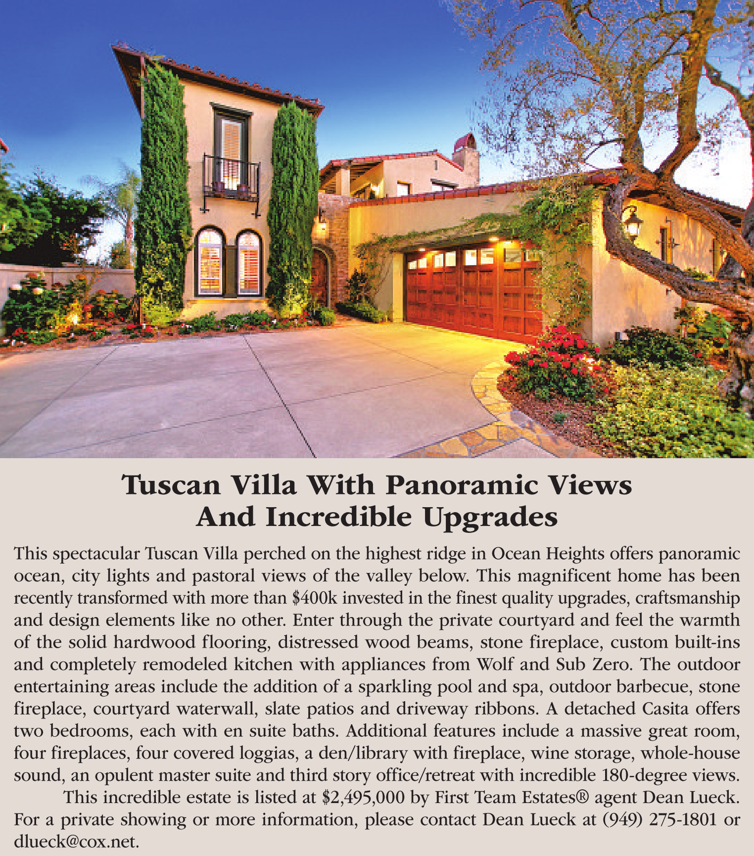 For a private showing or more information, please contact Dean Lueck at (949) 275-1801 or dlueck@cox.net.