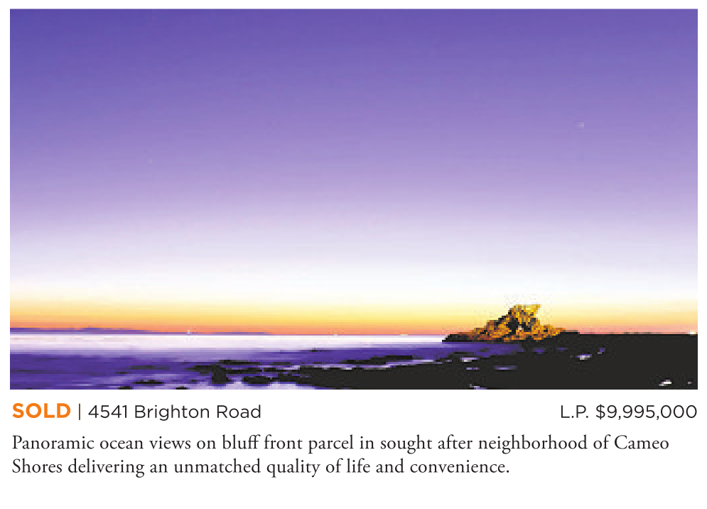 Panoramic ocean views on bluff front parcel in sought after neighborhood of Cameo Shores delivering an unmatched quality of life and convenience.
