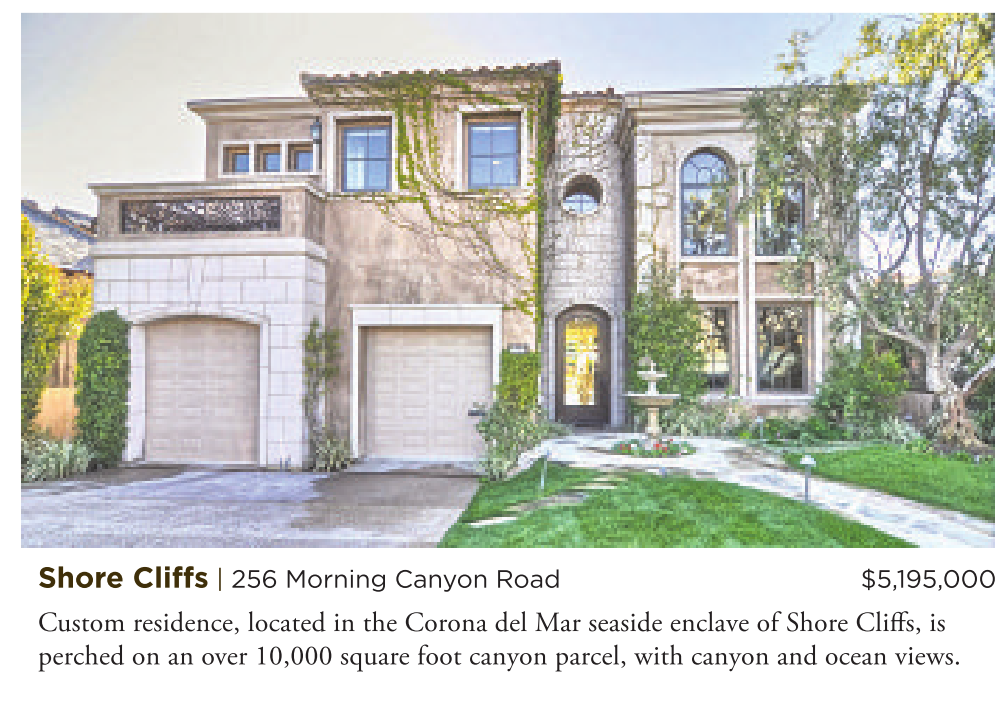 Custom residence, located in the Corona del Mar seaside enclave of Shore Cliffs, is perched on an over 10,000 square foot canyon parcel, with canyon and ocean views.