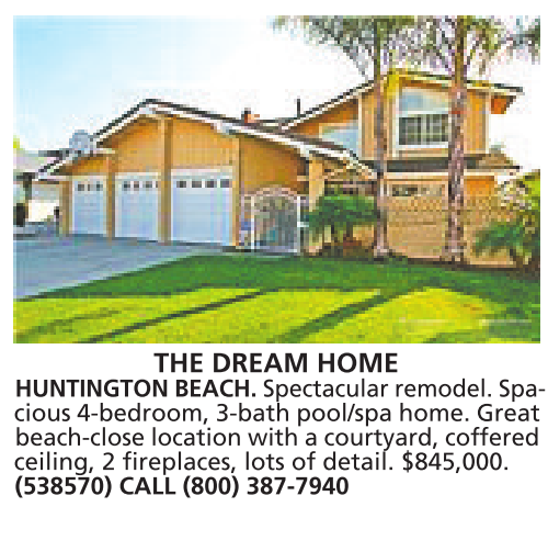 4-bedroom, 3-bath pool/spa home. Great beach-close location with acourtyard, coffered ceiling, 2 fireplaces, lots of detail. $845,000. (538570) CALL (800) 387-7940