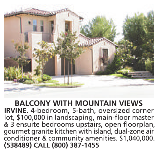 BALCONY WITH MOUNTAIN VIEWS IRVINE. 4-bedroom, 5-bath, oversized corner