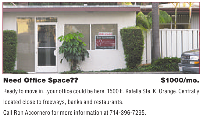 Call Ron Accornero formoreinformation at 714-396-7295.