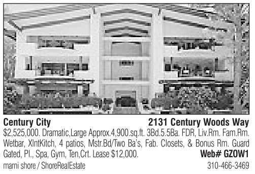 Wetbar, XlntKitch, 4patios, Mstr.Bd/Two Ba’s, Fab. Closets, &Bonus Rm. Guard $2,525,000. Dramatic,Large Approx.4,900.sq.ft. 3Bd.5.5Ba. FDR, Liv.Rm. Fam.Rm. Gated, Pl., Spa, Gym, Ten,Crt. Lease $12,000. Web# GZOW1