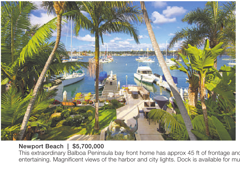 Newport Beach | $5,700,000 This extraordinary Balboa Peninsula bay front home has approx 45 ft of frontage and entertaining. Magnificent views of the harbor and city lights. Dock is available for multiple