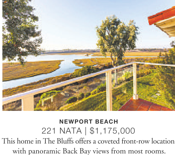 221 NATA | $1,175,000 This home in The Bluffs offers acoveted front-row location with panoramic Back Bay views from most rooms.