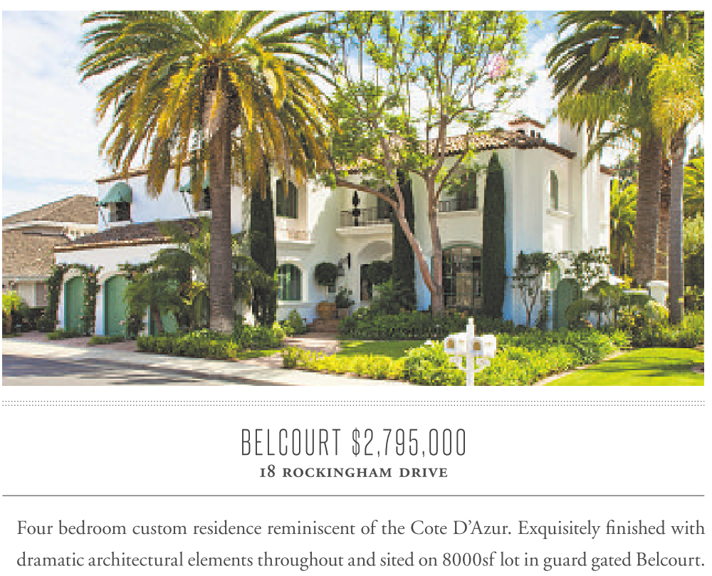 Four bedroom custom residence reminiscent of the Cote D’Azur. Exquisitely finished with dramatic architectural elements throughout andsited on 8000sf lotinguard gatedBelcourt.
