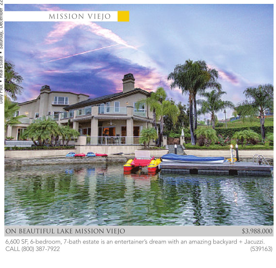 ON BEAUTIFUL LAKE MISSION VIEJO $3,988,000