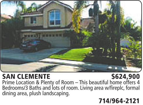 SAN CLEMENTE $624,900 Prime Location &Plenty of Room –This beautiful home offers 4