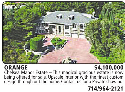 ORANGE $4,100,000 Chelsea Manor Estate –This magical gracious estate is now being offered for sale.Upscale interior with the finest custom design through out the home.Contact us for aPrivate showing.