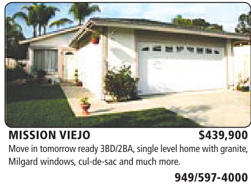 MISSION VIEJO $439,900 Move in tomorrow ready 3BD/2BA, single level home with granite, Milgard windows,cul-de-sac and much more.