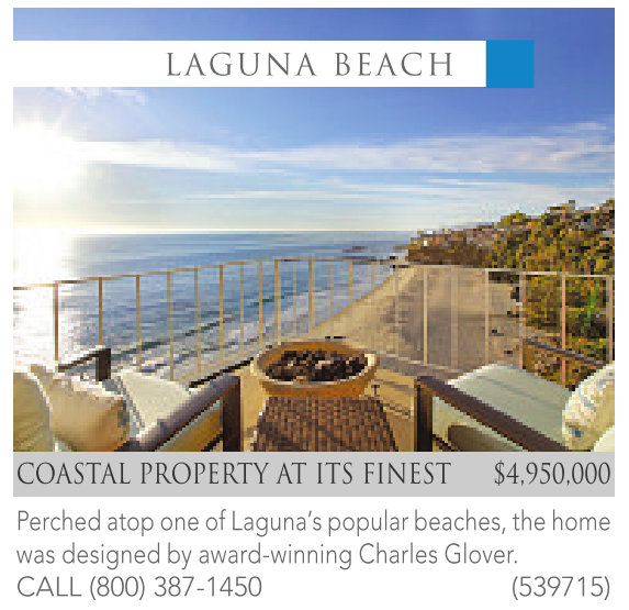 Perchedatopone of Laguna’s popularbeaches,the home was designed byaward-winning Charles Glover. CALL (800) 387-1450 (539715)