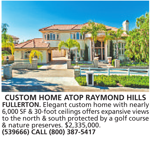 CUSTOM HOME ATOP RAYMOND HILLS FULLERTON. Elegant custom home with nearly
