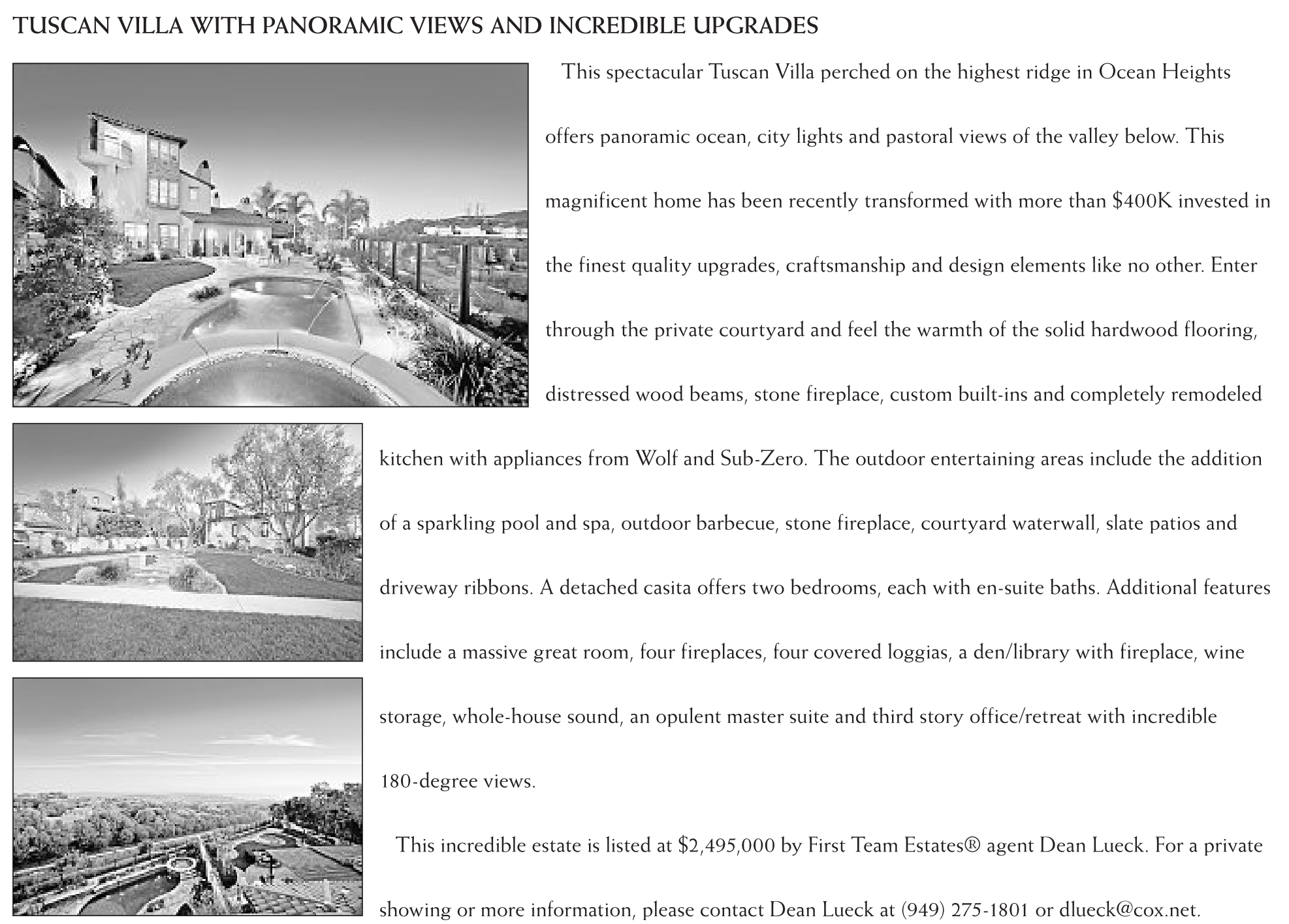 showing or more information, please contact Dean Lueck at (949) 275-1801 or dlueck@cox.net.