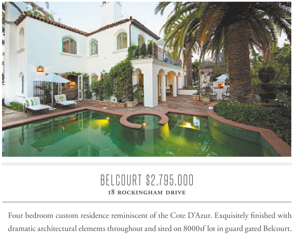 Four bedroom custom residence reminiscent of the Cote D’Azur. Exquisitely finished with dramatic architectural elements throughoutand sitedon8000sf lotinguard gatedBelcourt.