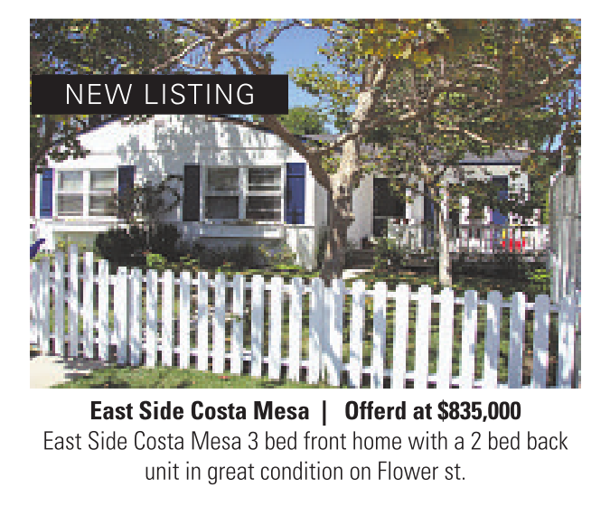 East Side Costa Mesa | Offerd at $835,000 East Side Costa Mesa 3 bed front home with a 2 bed back unit in great condition on Flower st.