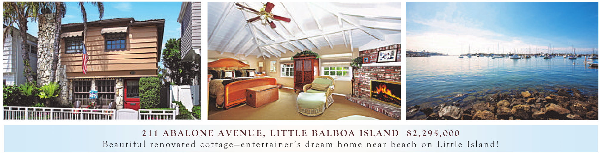 211 ABALONE AVENUE, LITTLE BALBOA ISLAND $2,295,000 Beautiful renovated cottage—entertainer’s dream home near beach on Little Island!