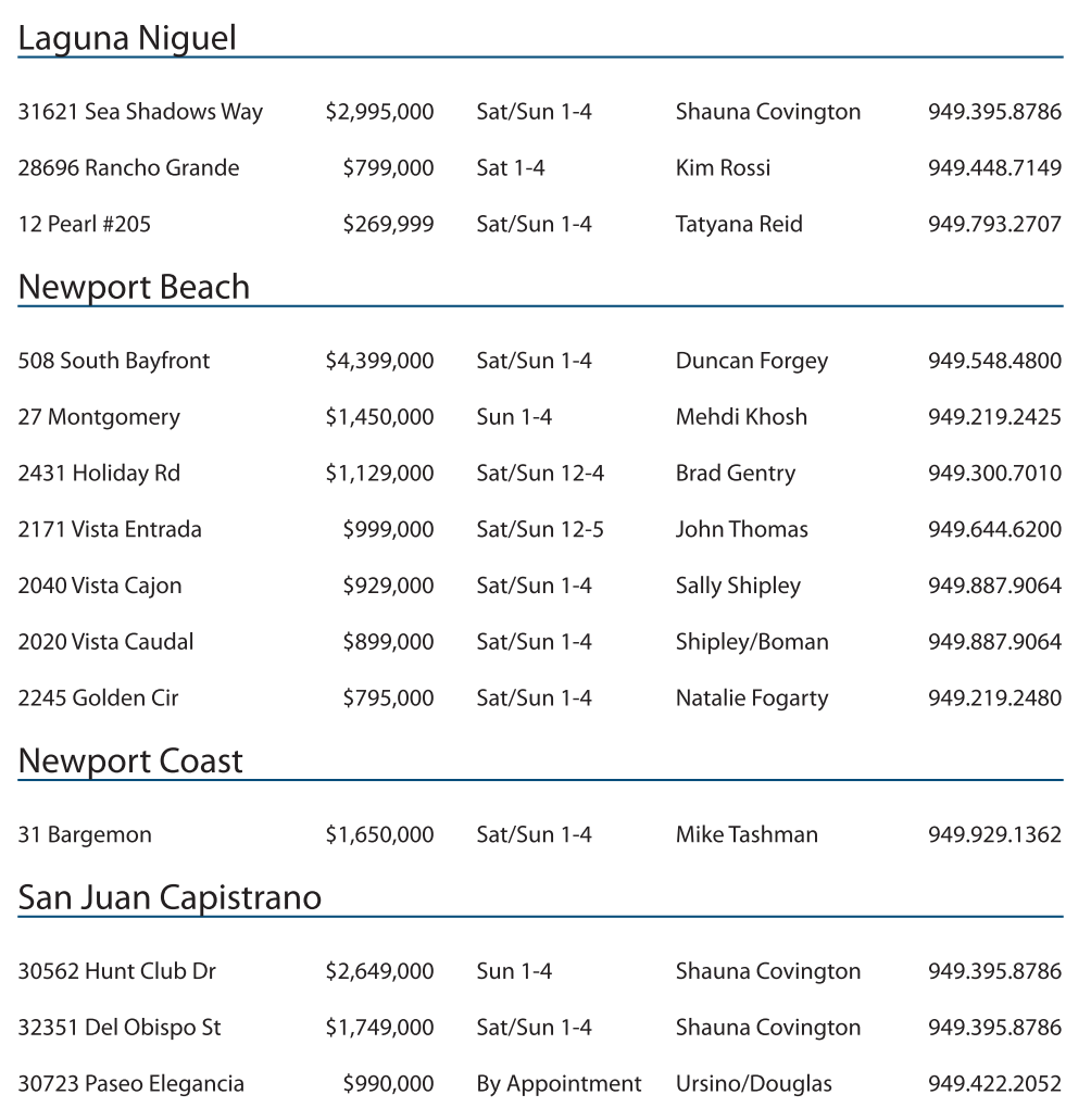 31 Bargemon $1,650,000 Sat/Sun 1-4 Mike Tashman 949.929.1362