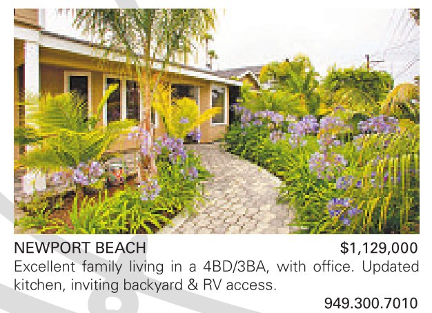 NEWPORT BEACH $1,129,000 Excellent family living in a 4BD/3BA, with office. Updated kitchen, inviting backyard & RV access.