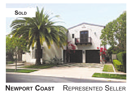 SOLD NEWPORT COAST REPRESENTED SELLER See also