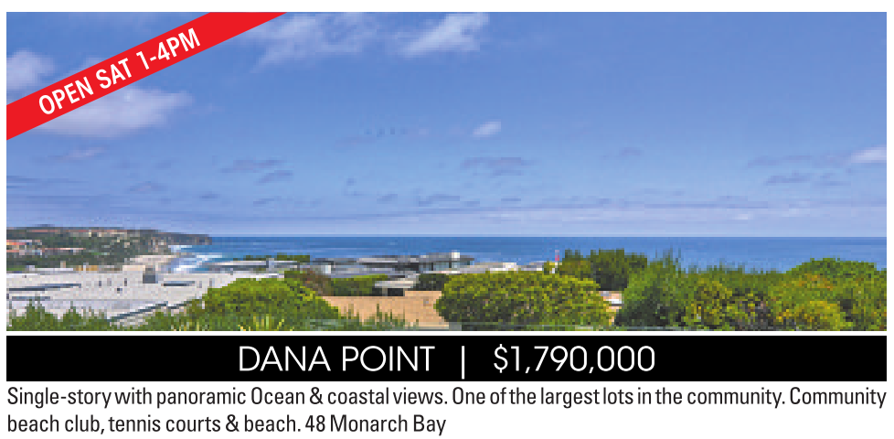 Single-storywithpanoramicOcean &coastal views.Oneofthe largestlotsinthe community. Community beachclub, tenniscourts &beach.48Monarch Bay