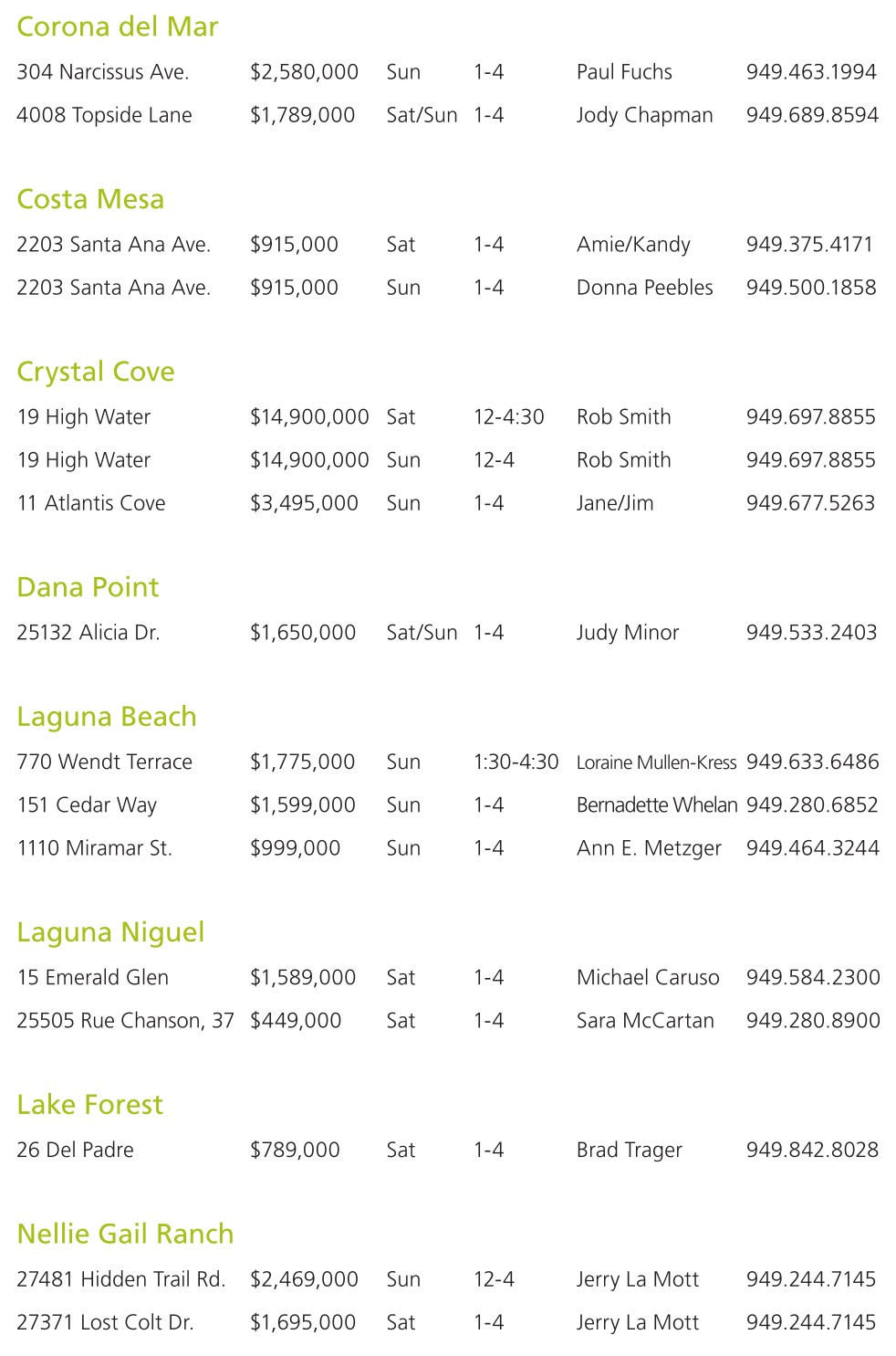 26 Del Padre $789,000 Sat 1-4 Brad Trager 949.842.8028