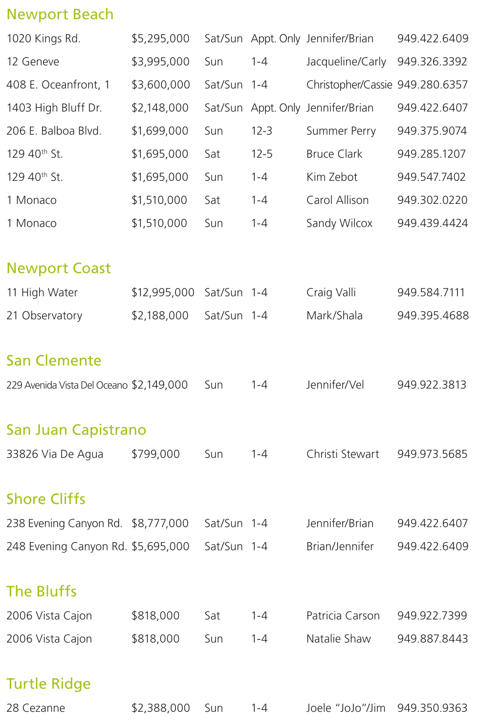 11 High Water $12,995,000 Sat/Sun 1-4 Craig Valli 949.584.7111