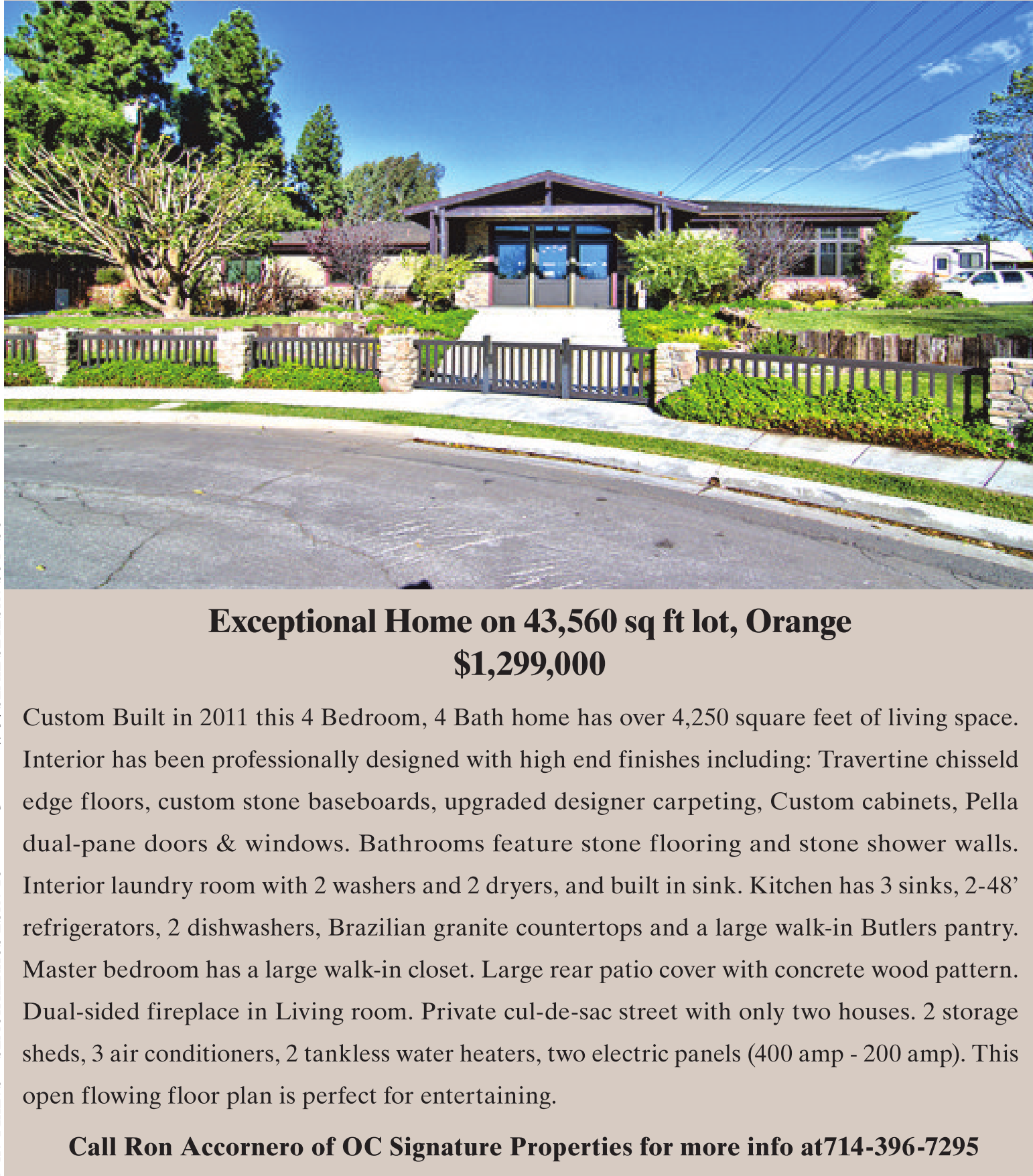 Call Ron Accornero of OC Signature Properties for more info at714-396-7295