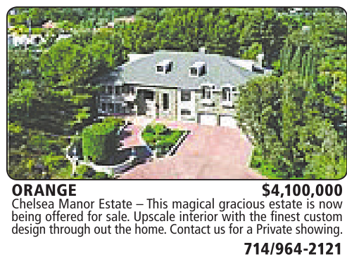 ORANGE $4,100,000 Chelsea Manor Estate –This magical gracious estate is now being offered for sale.Upscale interior with the finest custom design through out the home.Contact us for aPrivate showing.