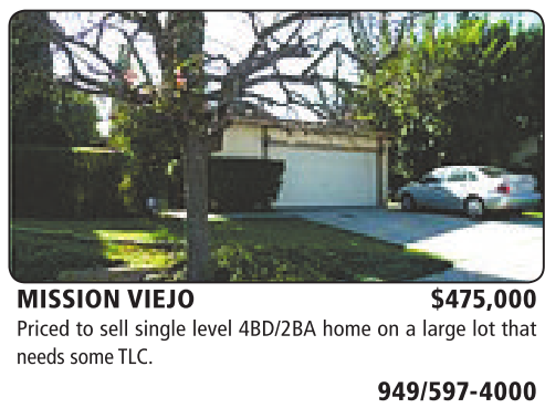 MISSION VIEJO $475,000 Priced to sell single level 4BD/2BA home on a large lot that needs some TLC.