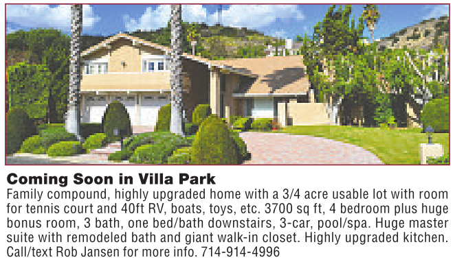 Call/text Rob Jansen formoreinfo. 714-914-4996
