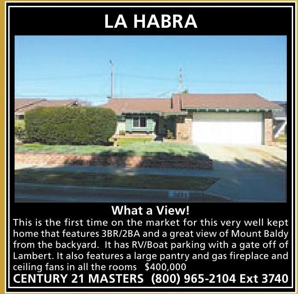 from the backyard. It has RV/Boat parking with a gate off of Lambert. It also features alarge pantry and gas fireplace and ceiling fans in all the rooms $400,000 CENTURY 21 MASTERS (800) 965-2104 Ext 3740