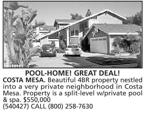 COSTA MESA. Beautiful 4BR property nestled into a very private neighborhood in Costa Mesa. Property is a split-level w/private pool