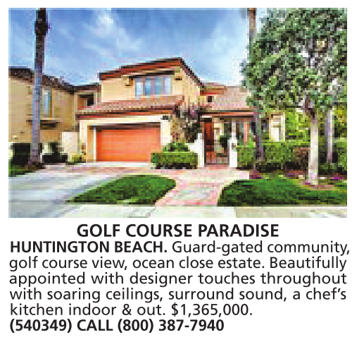 theater, GOLF COURSE PARADISE HUNTINGTON BEACH. Guard-gated community, golf courseview,ocean close estate. Beautifully appointed with designer touches throughout with soaring ceilings, surround sound, a chef’s kitchen indoor & out. $1,365,000. (540349) CALL (800) 387-7940
