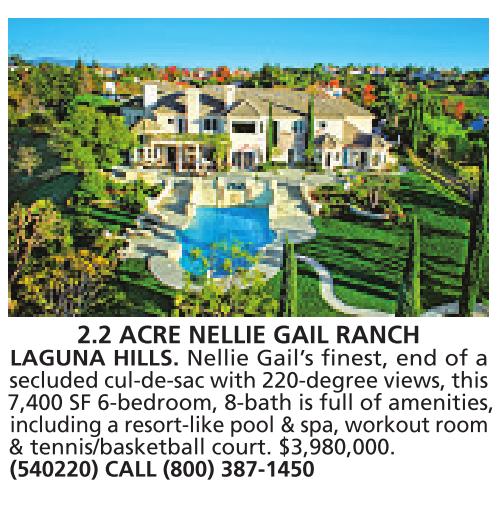 kitchen, 2.2 ACRE NELLIE GAIL RANCH LAGUNA HILLS. Nellie Gail’s finest, end of a secluded cul-de-sac with 220-degree views, this 7,400 SF 6-bedroom, 8-bath is full of amenities, including aresort-like pool &spa, workout room & tennis/basketball court. $3,980,000. (540220) CALL (800) 387-1450