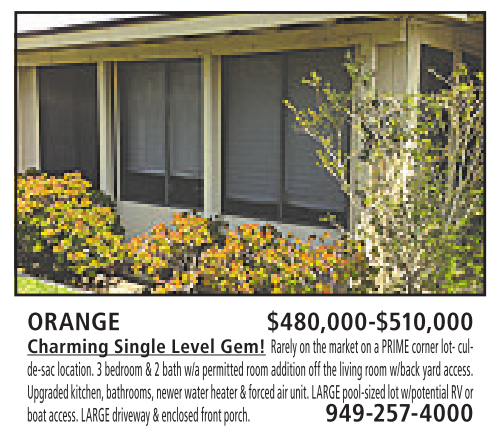 ORANGE $480,000-$510,000 Charming Single Level Gem! Rarely on the market onaPRIME corner lot- culde-sac location. 3bedroom &2bath w/a permitted room addition off the living room w/back yard access.