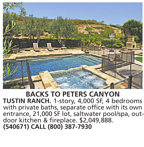 BACKS TO PETERS CANYON TUSTIN RANCH. 1-story, 4,000 SF, 4 bedrooms