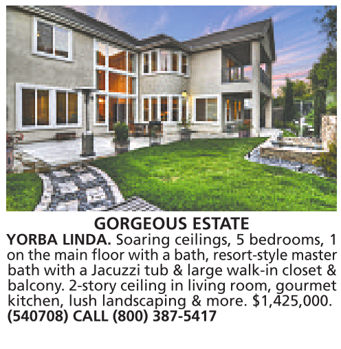 GORGEOUS ESTATE YORBA LINDA. Soaring ceilings, 5 bedrooms, 1
