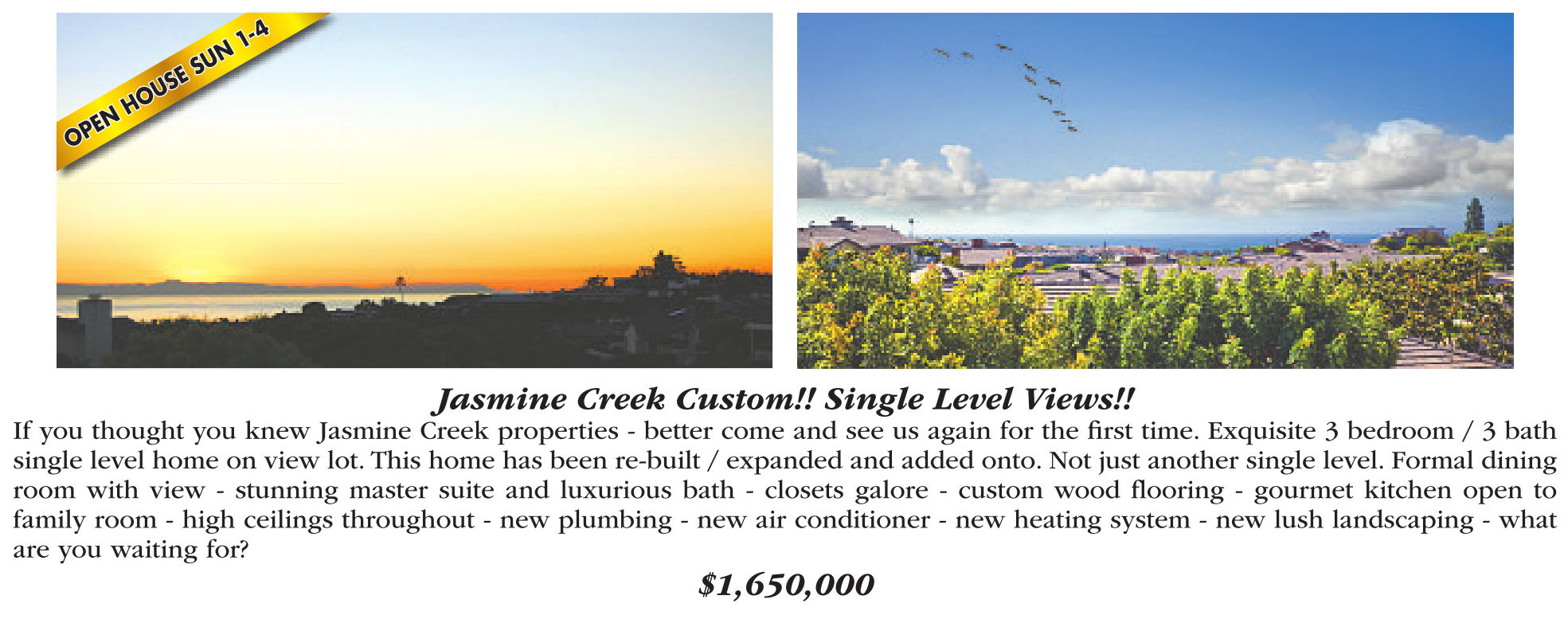 Jasmine Creek Custom!! Single Level Views!!