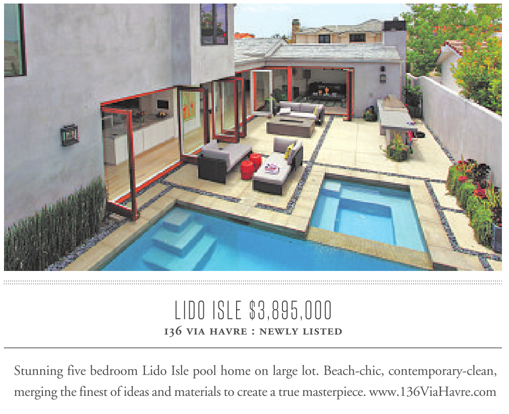 Stunning five bedroom Lido Isle pool home on large lot. Beach-chic, contemporary-clean,